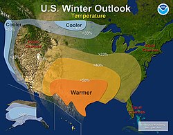 On October 21, 2010, the National Oceanic and Atmospheric Administration's Climate Prediction Center issued its US winter outlook. It predicted a La Niña to form. The Outlook predicted colder and wetter than average winter for the Pacific Northwest and Northern plains. It also predicted that the Southern plains, Gulf States, Southwest and Southeast Regions receiving a warmer and drier winter season with Florida having equal chance of a below or above average temperatures. The central United States, Mid Atlantic and New England had equal chances of having below or above average temperature and precipitation. It predicted that Alaska would have colder than average temperatures with an equal chance for above average or below average precipitation. It predicted that Hawaii would be drier than average in November but Wetter December through February. [4]