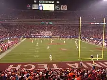 The Virginia Tech Hokies entered the 2010 season after a 2009 campaign that saw the team finish 10–3, including a season-ending win in the 2009 Chick-fil-A Bowl against the Tennessee Volunteers.[19] Because of that season-ending victory and the Hokies' general good performance during the 2009 season, Virginia Tech was ranked No. 10 in preseason national polling.[20] The Hokies' first game of the season was a nationally televised contest against then-No. 3 Boise State at FedExField near Washington, D.C. Because the game was the first of the season to feature two top-10 teams, it received large amounts of media coverage.[21][22][23] During the game, Virginia Tech fell behind 17–0 in the first quarter, but rallied to take a 21–20 lead early in the third quarter. The two teams traded the lead, alternating scoring drives until Boise State scored a touchdown with 1:06 remaining. Virginia Tech was unable to reply one final time, and Boise State earned a 33–30 victory.[24]