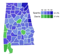 ![]() County results Bentley: 50–60% 60–70% 70–80% Sparks: 50–60% 60–70% 70–80% 80–90% | |||||||||||||||||