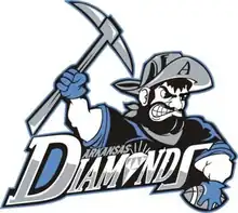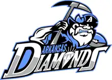 After the af2 league folded following the 2009 season, the Arkansas Twisters initially joined the newly formed Arena Football 1 but shifting league structure and concerns for stability lead to a November 2009 announcement that the team had jumped to the Indoor Football League.[2] However, the rights to the names and logos of the former af2 teams belonged to Arena Football 1.[3] Given the option of paying to buy or lease the trademarks, the Arkansas franchise chose instead to hold a "name the team" contest in late January and became the "Arkansas Diamonds" for the 2010 season.[4][5][6] (There had been another unrelated "Arkansas Diamonds" in the Southwest Independent Soccer League from 1989 to 1991 and in 1994 in the United States Interregional Soccer League.[7] Arkansas is the site of the only diamond mine in the United States.[8]) The new team colors for 2010 were Carolina blue, black, and gray.[9]