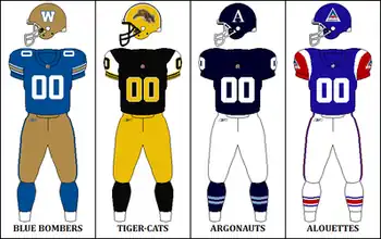 As the league approaches the 100th Grey Cup, the CFL will celebrate the 1970s with all eight teams wearing retro-themed uniforms from that era during Weeks 6 and 7.[1] Since Saskatchewan's alternate jersey is a version of the 1970s home jersey, they were the only team to wear both home and away retro jerseys during these games.