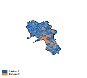 The centre-left filed as candidate Vincenzo De Luca, a fellow Democrat and popular Mayor of Salerno who had been one of the loudest critics of Bassolino from within his coalition, but it was not able to recover. Stefano Caldoro, a former minister and leader of the New PSI, merged into The People of Freedom in 2009, won by a convincing margin over De Luca thanks to a 20% swing in favour of the centre-right, which included the Union of the Centre led by Ciriaco De Mita, an influent former leader of Christian Democracy converted into the role of local party boss. After the election, De Mita's nephew, Giuseppe was appointed Vice President by Caldoro.
