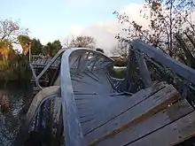 Several notable buildings in the Timaru area, 160 kilometres (99 mi) southwest of Christchurch, were also badly affected. A pinnacle on the tower of St Mary's Anglican Church tower fell to the ground, and the recently restored tower itself sustained "significant cracking".[117] The spire of St. Joseph's Catholic Church in Temuka was also shifted 10 centimetres (4 in) by the earthquake, leaving it precariously balanced, and the town's historic Royal Hotel was also damaged.[118]
