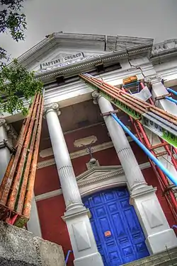 The Oxford Terrace Baptist Church, constructed 1881–1882, was extensively damaged.[113] Several other Christchurch area churches also suffered serious damage, including St. Mary's Anglican church in Merivale, St. John's Anglican church in Latimer Square, and the Rugby Street Methodist church.[114]
