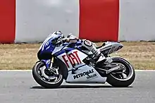 Jorge Lorenzo, riding his Yamaha at the MotoGP race, which he went on to win.