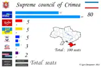 The 2010 Crimean parliamentary election were held on 31 October 2010 as a part of the general 2010 Ukrainian local elections. Unlike the previous election to the Verkhovna Rada of Crimea, they were conducted on the mixed member proportional representation system. In order to gain representation in the Parliament of the Autonomous Republic of Crimea, a party or bloc had to garner at least 3 percent of the total vote. The Party of Regions won the elections with an overwhelming majority.[1]