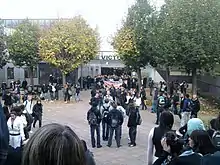 Students began to participate in the demonstrations during October, with 1 in every 15 schools in the country affected by the middle of the month.[6] Police fired rubber bullets in Montreuil, Seine-Saint-Denis, causing a 16-year-old student to nearly lose an eye, with other students reported to have also been injured.[7] Police sprayed tear gas on young protesters in Lyon, which was captured by television cameras.[7] Families and children came to the fore on the third day, the first occasion on which a demonstration occurred on a Saturday.[20]