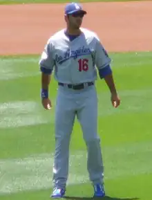 The Dodgers opened the regular season on April 5 in Pittsburgh, as opening day starter Vicente Padilla was roughed up in an 11–5 loss to the Pirates.[44] After dropping the second game of the season on a walk-off hit by Ronny Cedeño in the 10th inning,[45] the Dodgers rebounded and avoided being swept by posting a 10–2 rout in the series finale. Ronnie Belliard came up big with a home run, double and triple to back a solid start by Chad Billingsley.[46] The Dodgers traveled to Florida to take on the Marlins in their next series and Hiroki Kuroda started things off by allowing only one unearned run and striking out seven in eight innings as the Dodgers won the series opener 7–3.[47] The Dodgers blew a two-run lead in the ninth inning in the next game, as George Sherrill failed in a save opportunity and they lost 7–6.[48] In that game, Manny Ramirez recorded his 2,500th career hit with a fifth-inning infield single.[49] The team concluded its opening road trip on April 11, Charlie Haeger struck out 12 batters in six innings but the bullpen again faltered and the Dodgers fell 6–5 to the Marlins.[50]