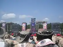 The 2010 National Scout Jamboree featured two arena shows: one on July 28, and another one was held on July 31. Both arena shows featured Chief Scout Executive Bob Mazzuca.[3][4] The first arena show featured several celebrities, including Sgt. Slaughter, Miss America Caressa Cameron, and Secretary of Defense Robert Gates.[3] The main arena show featured Mike Rowe, host of Discovery Channel's Dirty Jobs, and musical performances by Alex Boyé, Honor Society and Switchfoot.[4] The show ended with the largest fireworks display ever performed on a military base or at a national Scout jamboree.[4] There was some controversy over President Obama not appearing, as he had chosen to pre-record his appearance on The View that day - instead leaving a video message congratulating the Boy Scouts of America on their centennial. (unconfirmed that taping the VIEW excluded him from the 10 day event. please source.)[5]