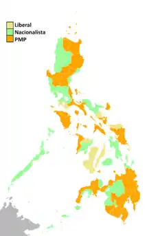 | Nacionalista Party | 49,585,503 | 16.69 | +6.59 | 1 | 3 | 2 | 4 | +1 | |