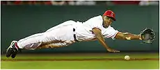 On October 19, 2009, catcher Kenji Johjima, the first Japanese-born catcher in Major League Baseball, exercised an opt-out clause in his contract and returned to playing in Nippon Professional Baseball.[4] The Mariners also lost their home run leader, Russell Branyan, who declined a one-year deal with the Mariners to test the free agent market.[5] Two-time Gold Glove winner Adrián Beltré opted for free agency on November 5, 2009, and later signed with the Boston Red Sox.[6] The third baseman declined $12 million in arbitration from the Mariners only days after the team signed Chone Figgins (see below).[7] Beltre officially parted ways with the Mariners when he signed a one-year, $9 million deal with the Boston Red Sox. Pitcher Phillippe Aumont, noted as one of the top prospects in the organization, was sent to the Phillies in the trade for Cliff Lee. Also, pitcher Brandon Morrow was traded to the Toronto Blue Jays as well.[8] Carlos Silva, whose time in Seattle was plagued by injury, was traded to the Chicago Cubs on December 18.[9]