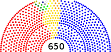 Polls just before election day showed a slight swing from the Liberal Democrats back to Labour and the Conservatives, with most of final polls falling within one point of Conservatives 36%, Labour 28%, Liberal Democrats 27%.[20][21] However, record numbers of undecided voters raised uncertainty about the outcome.[22][23] The Scottish National Party (SNP), encouraged by its victory in the 2007 Scottish parliament elections, set itself a target of returning 20 MPs and hoped to find itself holding a balance of power.[24] Equally, Plaid Cymru sought gains in Wales.[25] In Northern Ireland the Democratic Unionist Party (DUP) aimed to maintain or increase its number of seats, having been the fourth largest party in the House of Commons.[26][27] Smaller parties which had had successes at local elections and the 2009 European elections (UK Independence Party, Green Party, British National Party) aimed to extend their representation to seats in the House of Commons.[28][29]