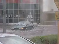 The storms brought extensive hail, strong winds and heavy rain, causing extensive damage to vehicles, property and trees, and flash flooding, as well as the first significant rainfall in Perth since 20 November 2009.[2] The hail stones are the largest ever known to have occurred in Perth and were around 3–6 cm (1.2–2.4 in) in diameter,[3] which caused extensive damage to property across the city,[4] including schools, hospitals, universities and power infrastructure. Wind gusts were recorded at around 120 km/h (75 mph).[2] At the peak, around 158,000 homes in Perth, Mandurah and Bunbury lost electric power.[2][5] Telephone lines were cut to thousands of homes until the next day, and the storms led to an estimated A$200 million worth of insurance claims within three days, with $70 million within the first 24 hours.[6] It was identified as the most expensive natural disaster in Western Australia's history,[7] and was declared a natural disaster by the Premier, Colin Barnett, allowing federal and state funds to be used for disaster relief.[8][9]