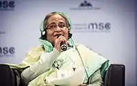 In 2013, the hard-line, right-wing, Islamic party, Jamaat-e-Islami was banned from registering and therefore contesting in elections by the High Court, citing their charter violates the constitution.[2][3] Street violence between the League, BNP and the Jamaat intensified in the run up to the general election. In 2014, the general elections were boycotted by the BNP. The elections were criticized by the United States, United Kingdom, European Union and the United Nations.[4] Sheikh Hasina was sworn in for a third tenure as prime minister.