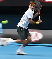 Jo-Wilfried Tsonga started the year having missed much of the end of the 2010 season because of injury.[56] He reached the third round of the Australian Open[56] and made his first final since October 2009 at the World Tennis Tournament in Rotterdam, where he lost to Robin Söderling 3–6, 6–3, 3–6.[57] In May, he dropped out of the top 20 for the first time since January 2008.[58] Tsonga then made his first grass-court final at the Aegon Championships in London, where he was defeated by Andy Murray, 6–3, 6–7, 4–6.[41] He carried this form into Wimbledon, reaching the semifinals. He came from two sets to love behind to defeat Roger Federer in the quarterfinals, 3–6, 6–7, 6–4, 6–4, 6–4.[48] At the US Open, he faced another quarterfinal against Federer, but this time was defeated. He then won two titles: his first in two years at the Open de Moselle over Ivan Ljubičić, 6–3, 6–7, 6–3[59] and the Erste Bank Open, this time defeating Juan Martín del Potro, 6–7, 6–3, 6–4, in the final.[60] Jo also made the final of the 2011 BNP Paribas Masters in November for the second time, after winning in 2008. However, this time he was defeated by Roger Federer 1–6, 6–7. Tsonga was competing for the second time, having previously competed in 2008.[1]