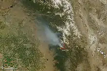 ![]() MODIS satellite image of the Lion Fire from space, on July 29, 2011 | |
