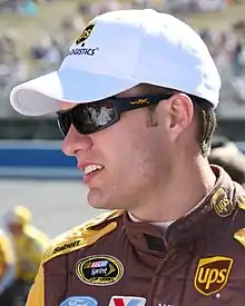 During qualifying, forty-five cars were entered, but only forty-three were able to race because of NASCAR's qualifying procedure.[12] Martin clinched his 50th career pole position, with a time of 49.433.[13] He was joined on the front row of the grid by 2011 Daytona 500 winner Trevor Bayne.[13] Clint Bowyer qualified third, Jeff Gordon took fourth, and David Ragan started fifth.[13] The two drivers that failed to qualify were Tony Raines and J. J. Yeley.[13]