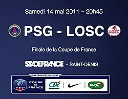 The 2011 Coupe de France Final was the 93rd final of France's most prestigious football cup competition. The final took place on 14 May 2011 at the Stade de France in Saint-Denis and was contested between Paris Saint-Germain and Lille.[1][2] Paris Saint-Germain were the defending champions of the competition and it was the third time in the club's history that it had appeared in back-to-back finals. The winner of the Coupe de France is guaranteed a place in the playoff round of the UEFA Europa League with the club's appearance being dependent on whether it qualifies for the 2011–12 UEFA Champions League. The final was broadcast live on France 2.