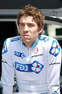 Though the team did not win any stage at the Rhône-Alpes Isère Tour, they were ubiquitous in the final standings. Pinot finished second overall, and he also won the mountains and youth classifications. Roy won the combativity classification.[80] At the Circuit de Lorraine, Roux won the opening stage of the race, taking an uphill sprint to the line in Longwy.[81] After losing the overall lead to Romain Feillu on stage 2, Roux remained in the top five, and eventually achieved his second victory of the race during the fourth stage, which moved him back into third place in the race, six seconds behind Feillu's teammate Thomas De Gendt with one stage remaining.[82] Roux overhauled De Gendt through bonus seconds earned on the final stage, and claimed his second overall win in a month and a half; he also finished clear at the top of the points classification.[83] The team failed to win another stage until July's Tour de Wallonie, where Ladagnous won the opening stage into Banneux.[84] He surrendered the race lead the following day, but still finished as the team's best-placed rider in the race, in eleventh place. At the Tour Alsace, Soupe and Bouhanni gave the team a 1–2 finish on the opening stage into Huningue.[85] Both riders severely struggled the following day; Bouhanni lost over 19 minutes on the stage winner, while Soupe failed to finish the stage.[86] In the race's final stage, Pinot soloed to victory and an eventual overall victory – also taking the young rider classification in the process – by 54 seconds over closest rival Stian Remme of Joker–Merida.[87]