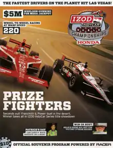 On May 3, 2011, IndyCar CEO Randy Bernard announced that a $5,000,000 (USD) purse would be awarded to any driver not on the IndyCar circuit to enter the race at Las Vegas and win while starting from the back of the field.[7] Bernard's original offer was exclusively to "any race car driver in the world outside of the IZOD IndyCar Series,"[4] hoping to attract interest from Formula 1 or NASCAR.[8][7] Bernard received offers that he deemed viable from motocross racer Travis Pastrana, former IndyCar champion Alex Zanardi, and NASCAR's Kasey Kahne, but all three offers were not without issue.[9]