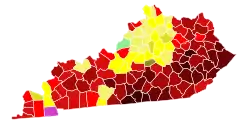 Beshear: 40–50% 50–60% 60–70% 70–80% Williams: 40–50% 50–60% 60–70% 70–80% | |||||||||||||||||||||||||