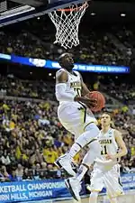 The 2012–13 Michigan Wolverines men's basketball team represented the University of Michigan during the 2012–13 NCAA Division I men's basketball season. The team played its home games in Ann Arbor, Michigan, at the Crisler Center.[1] This season marked the team's 96th consecutive year as a member of the Big Ten Conference, and it is occasionally referred to as "Team 96". The team was led by sixth-year head coach John Beilein. As the defending 2011–12 Big Ten Conference men's basketball season regular season co-champions, the Wolverines finished fourth in the conference in 2012–13 and as National Runner-up in the 2013 NCAA Division I men's basketball tournament after losing in the championship game to Louisville. Louisville's win was later vacated due to the 2015 University of Louisville basketball sex scandal. The team achieved a 31–8 record, the most wins by the program in 20 seasons.