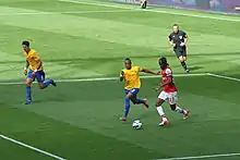 Travelling to a French training camp later in the month, the Saints played Étoile Carouge on 18 July and faced Evian Thonon Gaillard on 21 July.[39] In the first match, Southampton came back from a 1–0 deficit to win 4–1, with a goal from Luke Shaw and a late hat-trick from Billy Sharp.[40] In the second, the Saints won by a single first-half goal from Jason Puncheon.[41] Back in England, St Mary's hosted Dutch champions Ajax on 28 July, with the visitors securing a 1–0 win with a second half goal from winger Aras Özbiliz.[42] On 4 August recently relegated Wolverhampton Wanderers travelled to face Southampton, with the home side winning 2–0 thanks to goals from Billy Sharp and midfielder Jason Puncheon.[43]
