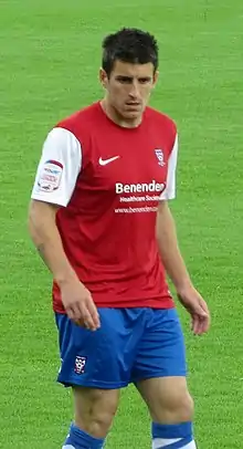 Coulson scored after 15 seconds to give York the lead at home to league leaders Oxford United, and with further goals from Chambers and Paddy McLaughlin the team went on to win 3–1.[40] York won 1–0 away in their first round match of the Football League Trophy against Rotherham United, with Blair scoring an 80th-minute winner.[41] Walker's equaliser in the fifth minute of stoppage time secured a 2–2 draw at home to Chesterfield.[42] There had been three goals scored in a five-minute period in the first half; Chesterfield opened the scoring through Sam Hird and Coulson equalised for York before Craig Westcarr restored the visitors' lead.[42] York drew their next match 1–1 away to Exeter City, having taken the lead through Coulson in the 52nd minute before the home team equalised when John O'Flynn scored in the 83rd minute.[43] The team's first away defeat of the season came with a 3–1 defeat away to Burton Albion; after McLaughlin gave York a ninth-minute lead, Burton went on to win with goals from Lee Bell, Calvin Zola and Matt Paterson.[44] A third draw in four matches came after York drew 0–0 at home to Cheltenham Town.[45] Platt and Liam Henderson were sent out to Harrogate Town and Gainsborough Trinity on three-month and one-month loans respectively, while Dobie was released and Taylor had his loan extended for a second month.[46][47] York's run of four matches without victory came to an end after a 2–0 win away to Aldershot Town, with Blair and Walker scoring in the second half.[48]