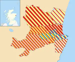 - †††† On 11 May 2015, Kincorth/Loirston SNP Cllr Callum McCaig resigned his seat on the council to concentrate on his duties as MP for Aberdeen South. A by-election was held on 30 July 2015 and it was won by the SNP's Stephen Flynn.