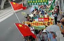 - "深圳广州数千人参加反日保钓游行示威". 凤凰网. Retrieved 2012-08-19.