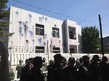 On 17 September, police in the city of Xi'an banned large protests and forbade the use of phone and online messages to organize illegal protests. For the duration of the week, paramilitary troops in Shanghai provided round-the-clock protection to the Japanese consulate, stripping demonstrators of projectiles, warning them against violence with megaphones, and limiting demonstrators' time at the site to a few minutes.[73] On September 18, police in Qingdao city arrested six people for violent acts in connection with the demonstrations. Guangzhou authorities arrested 18 people who committed anti-Japanese vandalism and asked the public to submit evidence against other violators.[74] Governments elsewhere in Guangdong Province warned citizens against being present in large crowds.[75]