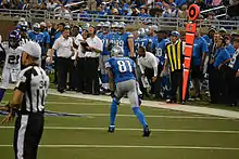 To open the regular season, the Lions hosted the St. Louis Rams. The Rams took an early lead when Greg Zuerlein kicked a 48-yard field goal, the only scoring drive of the first quarter. The Lions responded in the second quarter when Joique Bell ran in a touchdown from 1 yard out. St. Louis made it a 1-point game when Greg Zuerlein kicked a 29-yard field goal, and took the lead again when Cortland Finnegan intercepted a Matthew Stafford pass and ran it back 31 yards for a touchdown. The final points of the half were scored when Detroit's Jason Hanson kicked a 41-yard field goal. The only points of the third quarter was a 45-yard field goal by Jason Hanson to tie the game. In the final quarter, the score continued to sea-saw. First the Rams' Brandon Gibson caught a 23-yard touchdown pass from Sam Bradford to take the lead back again, but the Lions soon tied it back up when Kevin Smith ran in a touchdown from 5 yards out. The Rams then went up by 3 points when kicked Greg Zuerlein his third field goal of the game, this one from 46 yards out. In the final 2 minutes, the Lions completed their third 80-yard scoring drive with a game-winning 5-yard touchdown catch by Kevin Smith, his second of the game. The Lions were able to start 1–0 and capture their second straight regular season opening win.[4][5]