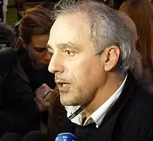 Philippe Poutou, a worker in a car factory, is the candidate of the New Anticapitalist Party, succeeding Olivier Besancenot. For much of the campaign, he remained little known to the general public; he was described as lacking Besancenot's popularity, charisma and ease with words. Freely admitting that he did not particularly want to be a candidate, and that he did not aim to be elected (particularly as one of his policies was to abolish the function of president, in favour of a fully parliamentary system), he saw his profile and popularity increase somewhat in the late stages of the campaign, when all candidates obtained equal airtime in the media. In particular, his unconventional behaviour drew attention during the television programme Des paroles et des actes (fr), along with his unusual campaign clips – such as one based on the film The Artist.[29][30] Like Nathalie Arthaud, his message was that improvements in workers' rights would come through workers' struggles and demands rather than through the ballot box.