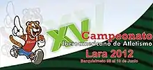 Initially set to be held in the country's capital Caracas, the competition was moved to Maracay in April 2011.[2] The Venezuelan Sports Ministry had not committed any funds for the event.[3] As a result, the president of the Venezuelan Athletics Federation, Wilfredy León, rescheduled the event following the promise of the Aragua state governor Rafael Isea to help build a new stadium for the championships.[4] However, the new stadium and purpose-built accommodation for the event were not ready within schedule. The event was postponed from May to June, but the project remained off-target and in May 2012 Héctor Rodríguez, the Venezuelan Sports Minister, declared that the competition would be held in Barquisimeto (the host of the 2003 South American Championships).