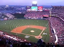 On December 8, 2011, the Angels shocked the baseball world by signing former St. Louis Cardinals star Albert Pujols and Texas Rangers ace C. J. Wilson spending up to $331 million on the two players.[5] According to analysts, Pujols was regarded as the best offensive player (along with arguably being the best player of this generation) and Wilson being the best pitcher on the market. Pujols had been a mainstay in the St. Louis Cardinals organization for 11 years prior to the signing and the Angels reportedly came into the negotiations at the last minute to sign the prized free agent. All media speculation prior to Dec 8 surrounding Pujols was centered around the Cardinals and Miami Marlins, while not as much as the Marlins, the Angels reported offer of $254 million over 10 years was much more than the reported offer by the Cardinals and had a full no-trade clause.[6] As for C. J. Wilson, analysts predicted that the Angels would go after him, and while the Marlins offered him more money and a longer contract term, the Orange County native opted to return home and play for the Angels for a reported $77.5 million over 5 years.[7] The two prize signings were introduced to the Southern California media and fans on December 10 in front of the two large hats at Angel Stadium. Because the press conference was outdoors and in front of the stadium, fans were encouraged to attend and anywhere between 3,000 and 5,000 fans attended to get a glimpse of the two new Angels.[8][9] Also, within just a few days of the signings, the Angels reportedly sold over 1,000 new season ticket packages, 500 online subscriptions, and a large spike in merchandise sales at the Angels team store in Anaheim.[10]