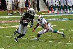 To fill the vacancy left by Brandon Marshall, the Dolphins signed veteran receiver Chad Johnson (whose last name was Ochocinco at the time of the signing) on June 11, 2012.[21] During training camp, Johnson's work ethic, which was highlighted on HBO's Hard Knocks, put him on track to make the opening day roster; however, a domestic dispute between Johnson and his wife Evelyn Lozada prompted the Dolphins to release him on August 12, 2012.[22]