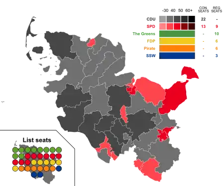 All 69 seats in the Landtag of Schleswig-Holstein 35 seats needed for a majority | |||||||||||||||||||||||||||||||||||||||||||||||||||||||||||||||||||||||||||||