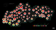 | SKDÚ-DS | 15.4% (28) | 12.8% (21) | 12.2% | 11.3% (20) | 10.2% (17) | 8.3% (16) | 6.1% (11) | 6% (11) |