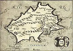 Although Jersey was part of the Roman world, there is a lack of evidence to give a better understanding of the island during the Gallo-Roman and early Middle Ages. The tradition is that the island was called Caesarea by the Romans[1] as laid down in the Antonine Itinerary, however this is disputed by some, who claim Caesarea, Sarnia and Riduna are the Scilly Isles off the southwestern tip of England, nevertheless Sarnia in particular has a large cultural influence as the historic name of Guernsey (for example the national anthem of Guernsey is Sarnia chérie). Andium however is also mentioned on the list and this name is very often attributed to Jersey. Therefore, it is possible another island, such as the Minquiers were in fact Caesarea and Jersey Andium.[2]
