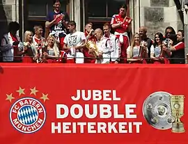 ![]() Bayern Munich players celebrating their successful double-winning season | ||||