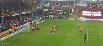 With the winter transfer window due to open, United opted to allow striker Lyle Taylor to join Scottish Premiership side Partick Thistle for the remainder of the season.[103] Taylor was quickly followed by fellow striker Marlon King whose short-term contract was terminated at the end of the year.[104] Youngster Jahmal Smith joined Harrogate Town on a youth loan.[105] Having picked up an injury during the game against Oldham, Aidan White cut short his loan spell to return to Leeds for treatment.[106] United's unbeaten run did not last into the new year, as despite leading 1–0 at half time, they were beaten 2–1 away at Walsall.[107] As January began Aaron Barry returned from a successful loan spell at Dumbarton having played over 20 times for the Sons,[108] before United knocked Premiership side Aston Villa out of the FA Cup following a 2–1 third round at Villa Park.[109] The following week saw a flurry of arrivals and departures as Elliott Whitehouse returned from his loan spell at York City,[110] whilst Joe Ironside returned from Halifax Town, Callum McFadzean returned from Chesterfield and youngster Jahmal Smith joined Harrogate Town on a months loan.[111] Conor Coady then extended his loan with United until the end of February,[112] and Darryl Westlake extended his loan with Mansfield Town until the end of the season.[113] The following day Malachy Brannigan was unveiled as the club's new managing director, reuniting with Nigel Clough, with whom he had worked at Derby County.[114] The week concluded with United signing Billy Paynter on loan for the rest of the season from South Yorkshire rivals Doncaster Rovers,[115] whilst Marcus Williams left permanently for Scunthorpe United on a free transfer,[116] and Sean McGinty joined Northampton Town on a months loan.[117] For the second league fixture in a row United let a lead slip to lose 2–1 at Notts County,[118] and then as Nigel Clough continued to revamp the squad, Febian Brandy was allowed to rejoin Walsall on loan for the remainder of the season, only six months after leaving the West Midlands club,[119] and Florent Cuvelier joined Port Vale for a similar period.[120] In their next match, United drew 2–2 at home with Yorkshire rivals Bradford City despite having held a two-goal lead at half time.[121] 24 January saw United make a number of signings, bringing in John Brayford on loan for the remainder of the season from Cardiff City, signing Stefan Scougall from Livingston for an undisclosed fee,[94] and agreeing a loan-swap deal with Blackpool that saw Bob Harris sign for a month with United, with Tony McMahon moving in the opposite direction.[122] In the fifth round of the FA Cup United held Premier League Fulham to a 1–1 draw at Bramall Lane, despite being reduced to ten men for most of the second half following Michael Doyle's red card.[123] On 30 January, McMahon agreed a permanent switch to Blackpool, after the west-coast club decided to take up the remainder of his contract.[124] The following day, in the final hours of the transfer window, United agreed a similar deal with Bob Harris, taking over the remainder of his contract from his former club.[102]