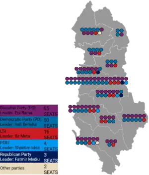 All 140 seats in the Parliament of Albania 71 seats needed for a majority | ||||||||||||||||||||||||||||||||||||||||||||||||||||||||