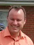 The National Party nominated political newcomer Matt Doocey for the by-election, who is a manager for the Canterbury District Health Board.[15] The party's Canterbury Westland Regional Chair, Roger Bridge, noted that a sitting government has never won a by-election in an electorate that it did not already hold.[16] Bridge later conceded that it would be "very, very hard for us to win".[17] When Kate Wilkinson, National MP for the Waimakariri electorate, announced in early November 2013 that she would retire at the end of the term of the 50th Parliament, rumours immediately surfaced that Doocey would replace her as National's Waimakariri candidate, and the Christchurch East by-election would help him gain experience in contesting an election.[18][19]