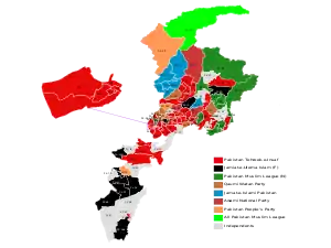 Pakistan Tehreek-e-Insaf, led by former cricketer Imran Khan emerged as the largest party in the province with 48 seats. While this was a considerably higher number than the second largest party, (Jamiat Ulema-e-Islam (F), with 16 seats), it was still 15 seats short of a majority government.