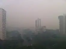 The 2013 Southeast Asian haze was a haze crisis that affected several countries in Southeast Asia, including Brunei, Indonesia, Malaysia, Singapore[2] and Southern Thailand, mainly during June and July 2013. The haze period was caused by large-scale burning in many parts of Sumatra and Borneo. Satellite imagery from NASA's Terra and Aqua satellites showed that the haze was mainly due to smoke from fires burning in Riau province, Indonesia.[3]