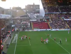 October started with Paddy McCarthy joining United from Crystal Palace on an initial one-month loan.[44] On 4 October, United lost 3–2 away at Chesterfield with Michael Higdon receiving a red card.[45] The Blades' next match was in the Football League Trophy, winning 2–1 away at Hartlepool United on 7 October,[46] two days before Diego De Girolamo joined York City on a short-term loan deal.[47] Back in the league United needed late goals to come from behind again to record a 2–2 draw against Leyton Orient.[48] Seven days later they were 2–0 victors in a televised away fixture against Bradford City as defender Bob Harris scored his first goal in the club's colours and Marc McNulty netted his fifth of the season.[49] Three days later, United made it two wins on the bounce with a 2–0 home win against Yeovil Town.[50] On 23 October, Andy Butler was sent out on loan to home-town club Doncaster Rovers until January.[51] United made it three wins and three clean sheets in three games with a 1–0 victory away at Crewe Alexandra on 25 October as Stefan Scougall scored his first goal of the season.[52] United rounded off October with a 2–1 away victory over Milton Keynes Dons thanks to a late brace from Michael Higdon, which sent United to the last eight of the League Cup in the fifth round.[53]