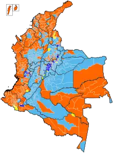 | Bogotá | 1,341,963 | 52.54% | 1,076,816 | 42.16% | 135,053 | 5.28% | ||||||