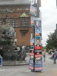 A central theme in the campaign was the claim of benefit tourism as a threat to the Danish welfare state, a position the Danish People's Party fronted and which was partly supported by Venstre, the Conservatives and the Social Democrats.[7] The Social Liberal Party took the most positive position towards free movement of people inside the EU and was supported by Danish businesses.[8]