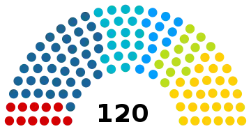 The 120 seats in the Supreme Council were elected by proportional representation in a single nationwide constituency, with an electoral threshold of 7% on the national level, as well as 0.7% on each of the nine provinces. No party is allowed to hold more than 65 seats.[1] Party lists were required to have at least 30% of the candidates from each gender, and every fourth candidate had to be of a different gender. Each list was also required to have at least 15% of the candidates being from ethnic minorities.[1]