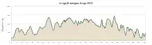 The following climb was the Côte de La Redoute (2 kilometres (1.2 miles) at 8.9%), with 34.5 kilometres (21.4 miles) from the summit to the finish line.[17] Cyclingnews.com described La Redoute as "the most emblematic climb of the entire race".[18] It had an uneven gradient: the first 1 kilometre (0.62 miles) was at about 8%, before 500 metres (1,600 ft) at around 13% and another 500 metres (1,600 ft) at 6%. The riders descended down twisting roads, crossed over the uncategorised Côte de Sprimont, before coming to the penultimate climb, the Côte de la Roche-aux-Faucons (1.5 kilometres (0.93 miles) at 9.4%) with 19 kilometres (12 miles) to the finish line.[17] This was one of the most difficult climbs of the race, with frequent changes of gradient and a poor road surface.[16] There was then another uncategorised climb and a steep descent into the outskirts of Liège.[17]